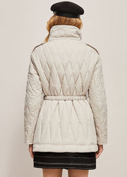 Modern White Stand Collar Pockets Fine Cotton Filled Cinch Jackets Winter