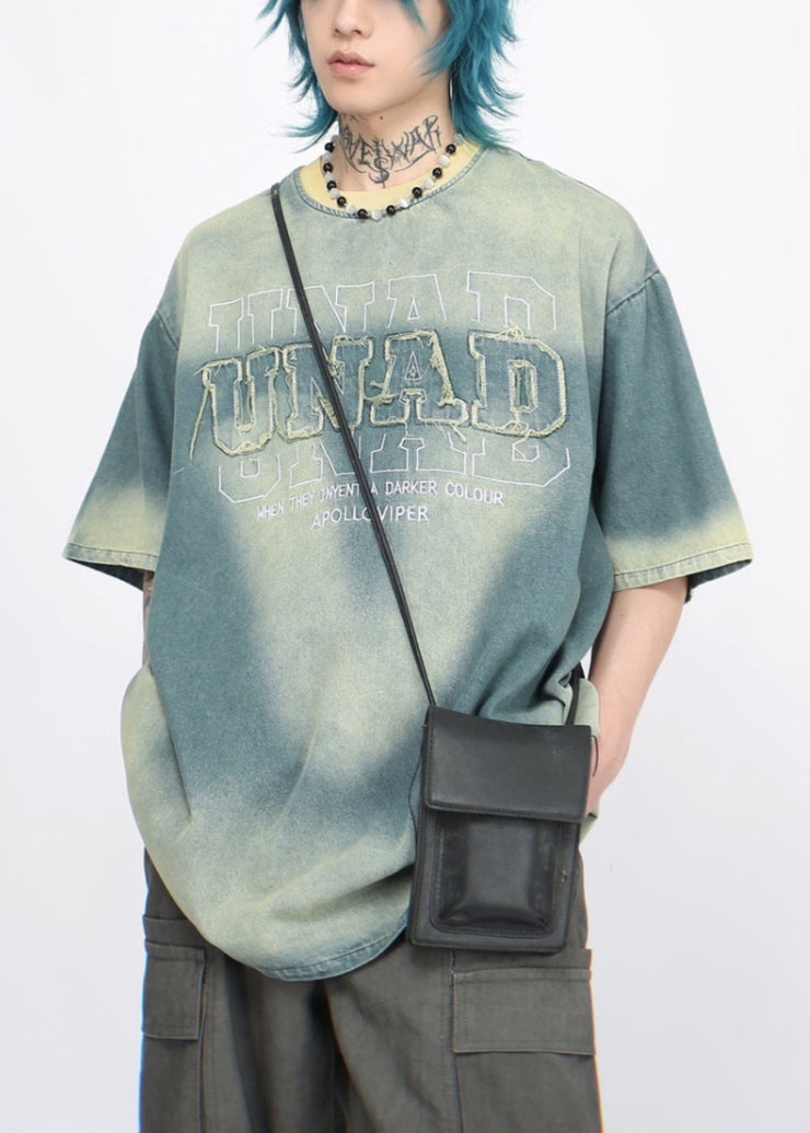Loose Blue Gradient Color Letter Denim Men T Shirts Summer