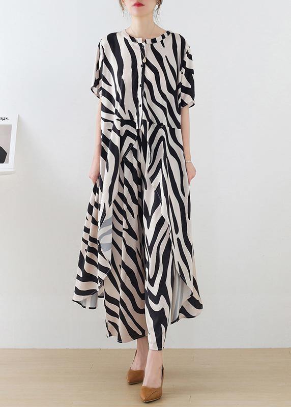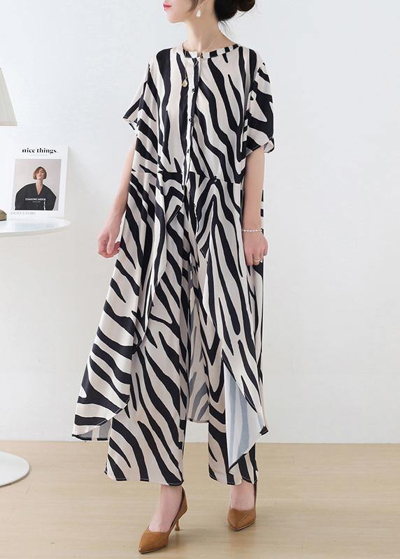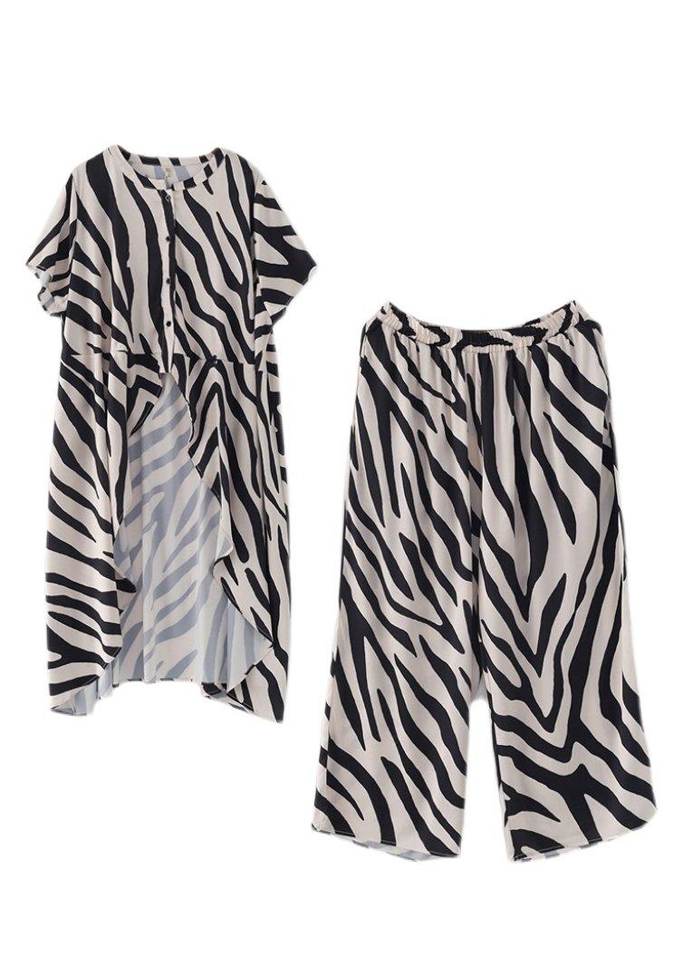 21 Summer Suit Zebra Stripe Silk Wide Leg Pants Irregular Two Piece Set