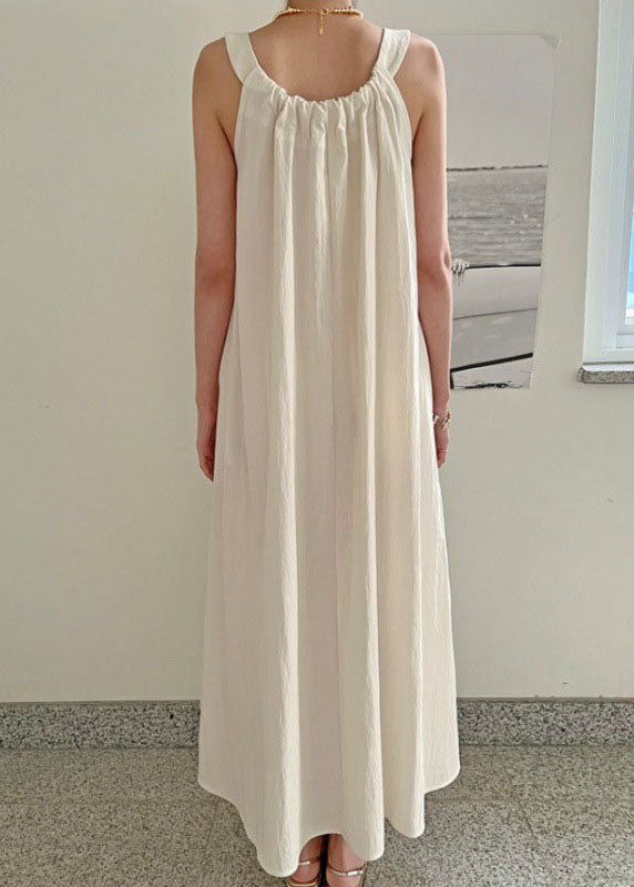 Handmade Khaki Wrinkled Patchwork Cotton Spaghetti Strap Dress Sleeveless