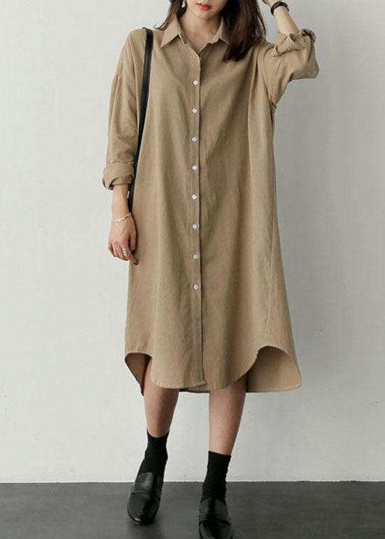 Loose Khaki Peter Pan Collar Button Cotton Top shirts Spring