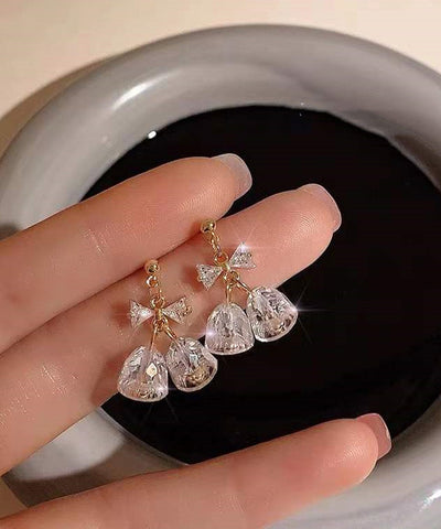 Fashion Gold Copper Overgild Zircon Bow Bell Drop Earrings