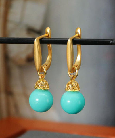 Stylish Light Green Sterling Silver Overgild Turquoise Drop Earrings
