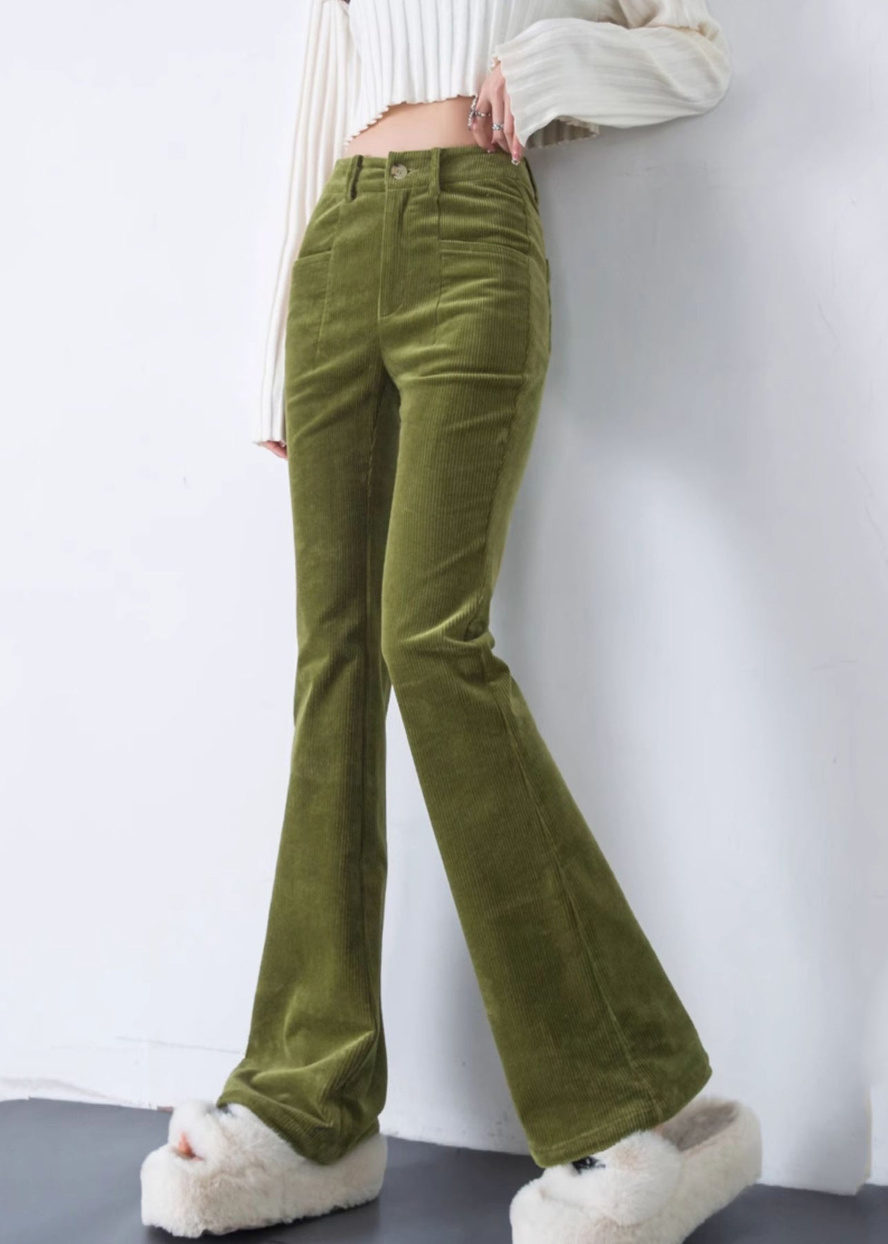 Fruit Green Silm Fit Corduroy Bell-bottom Trousers Spring