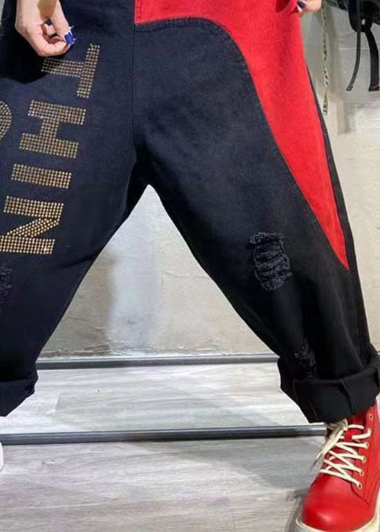 Stylish Colorblock Ripped Denim Spaghetti Strap Jumpsuits Summer