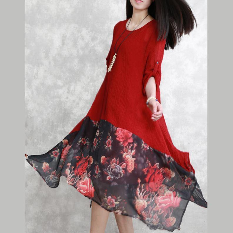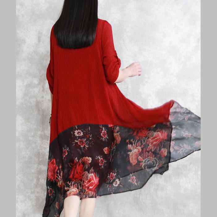 fashion red silk dress plus size clothing patchwork silk clothing dresses women asymmetric hem silk caftans