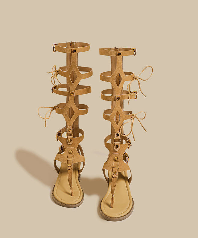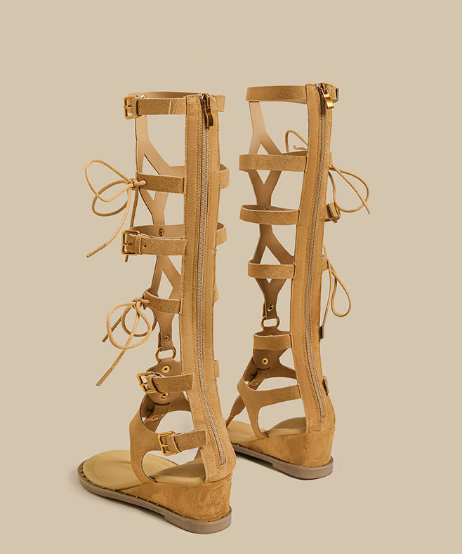 Black Lace Up Splicing Suede Wedge Gladiator Flip Flops