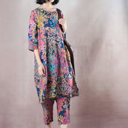 baggy blue floral linen Vest plus size shirts New half sleeve o neck natural linen pullover