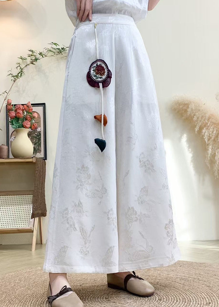 Chinese Style Purple Tassel Pockets Jacquard Silk Pants Fall