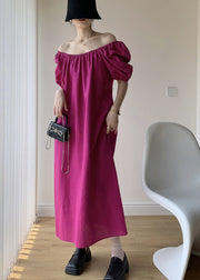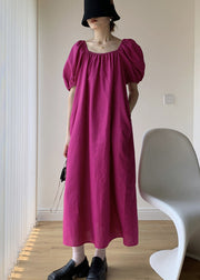 Chic Rose Backless Patchwork Cotton Long Dresses Puff Sleeve