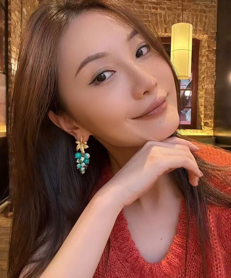Boho Gold Copper Overgild Turquoise Grape Drop Earrings
