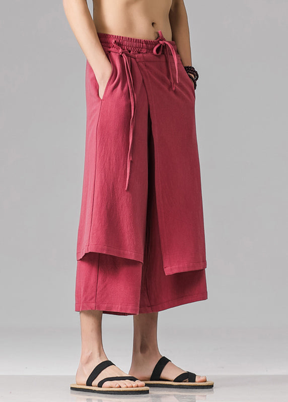 Stylish Red Pockets Patchwork Tie Waist Men Pants Summer