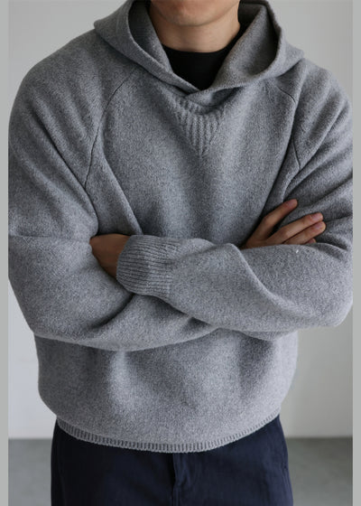 Art Grey Hooded Thick Woolen Sweater Men Winter