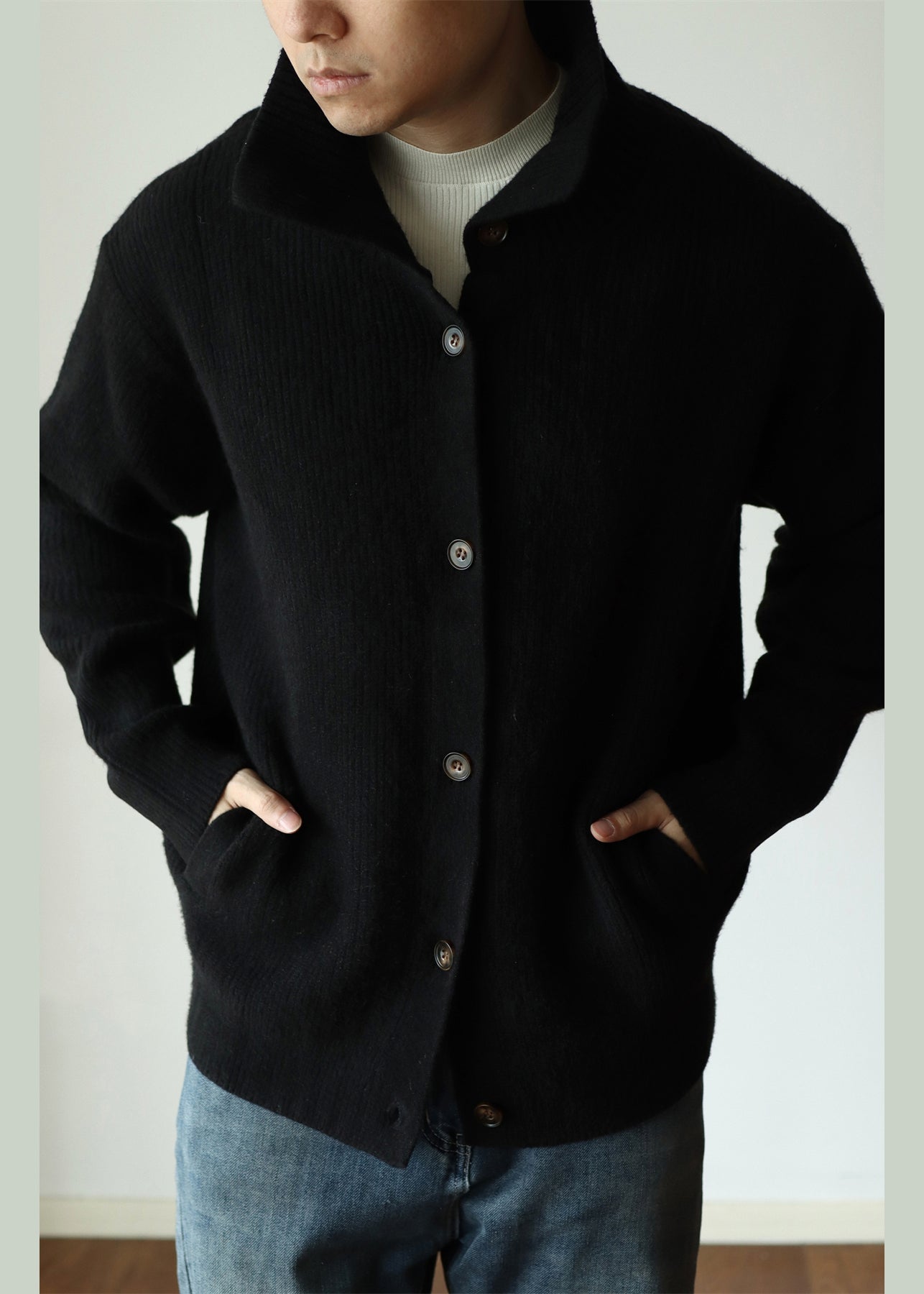 Modern Black Button Cozy Woolen Mens Coat Winter