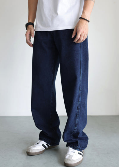 Simple Blue Pockets High Waist Denim Mens Pants Fall