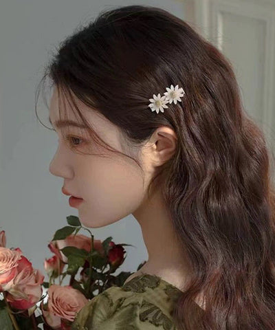 Cute White Copper Overgild Resin Daisy Floral A Pair Hairpin