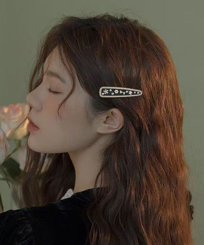 Novelty Black Alloy Pearl Zircon Hairpin Two-Piece Set