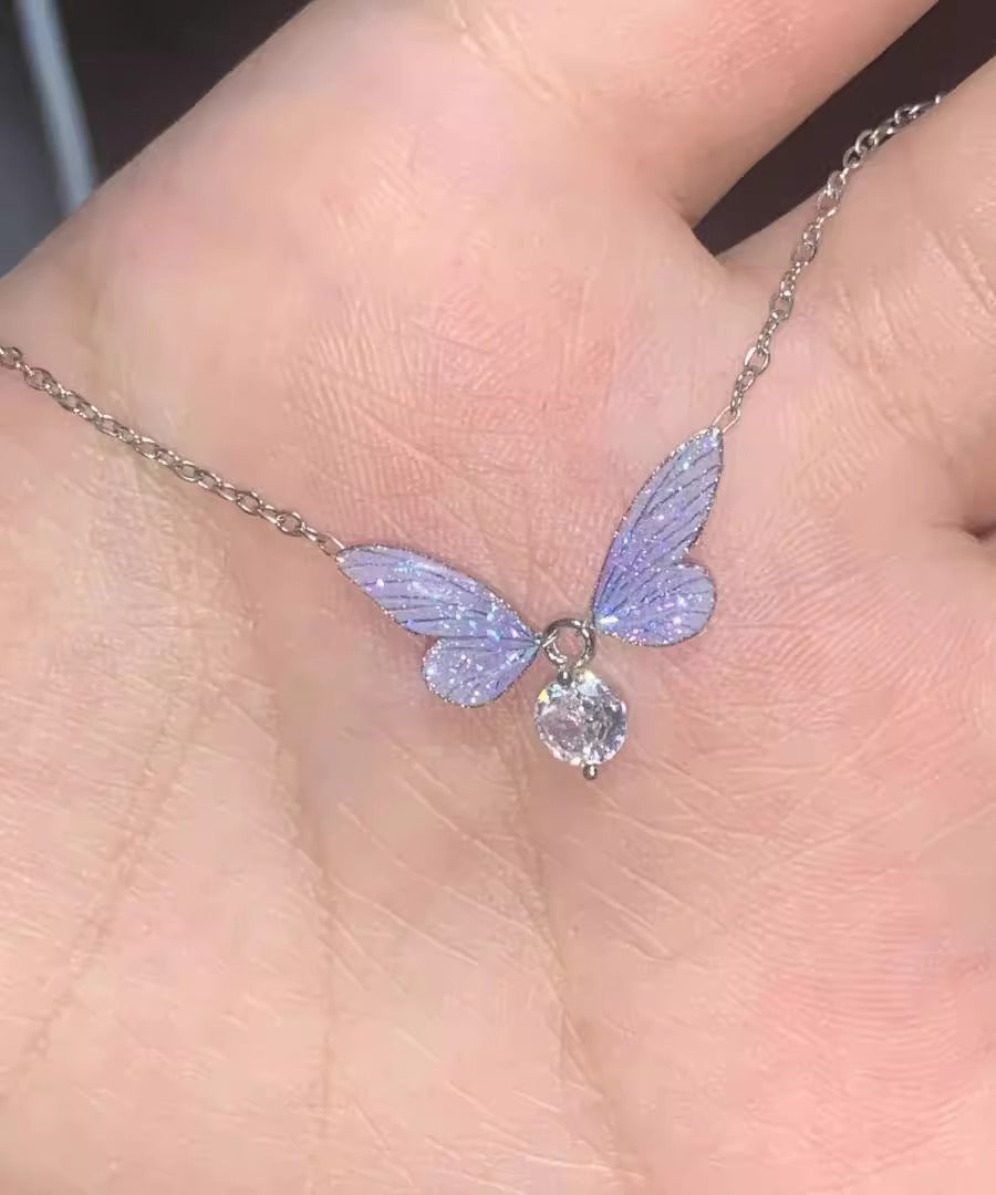 Simple Black Alloy Zircon Butterfly Pendant Necklace