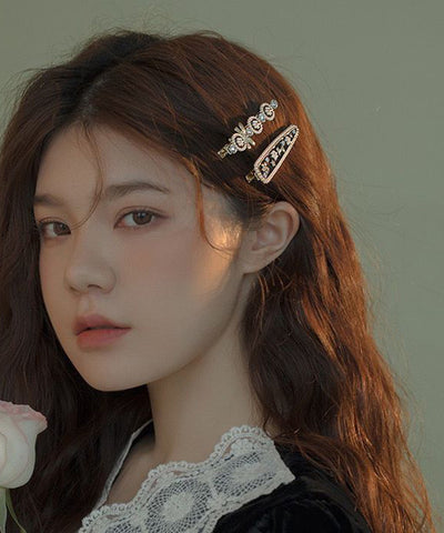 Novelty Black Alloy Pearl Zircon Hairpin Two-Piece Set