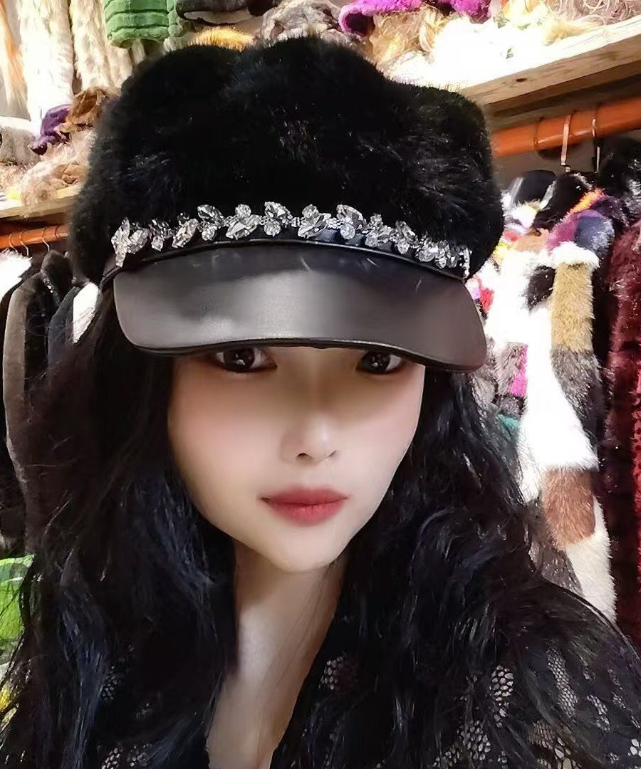Chic Black Zircon Fuzzy Fur Fluffy Beret Hat