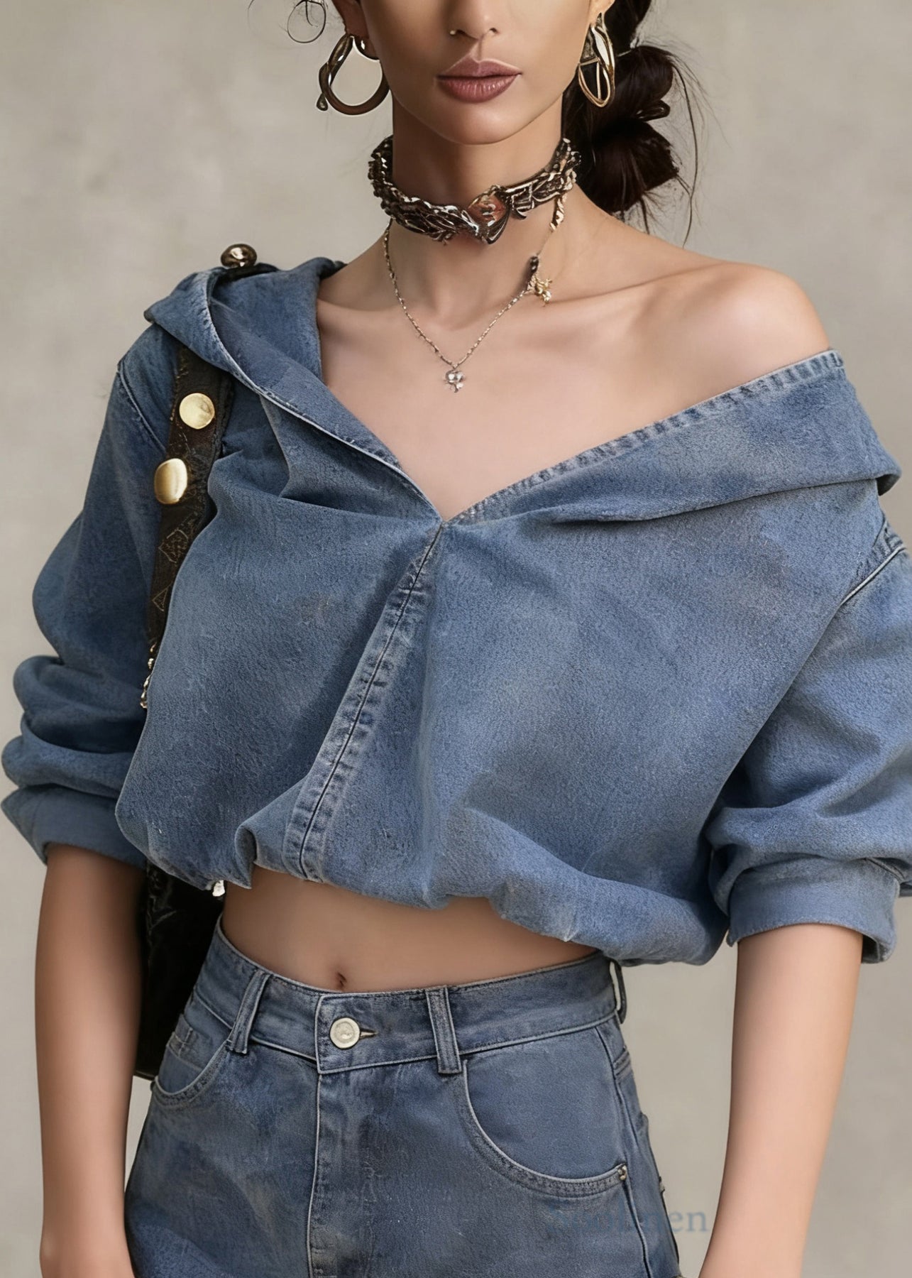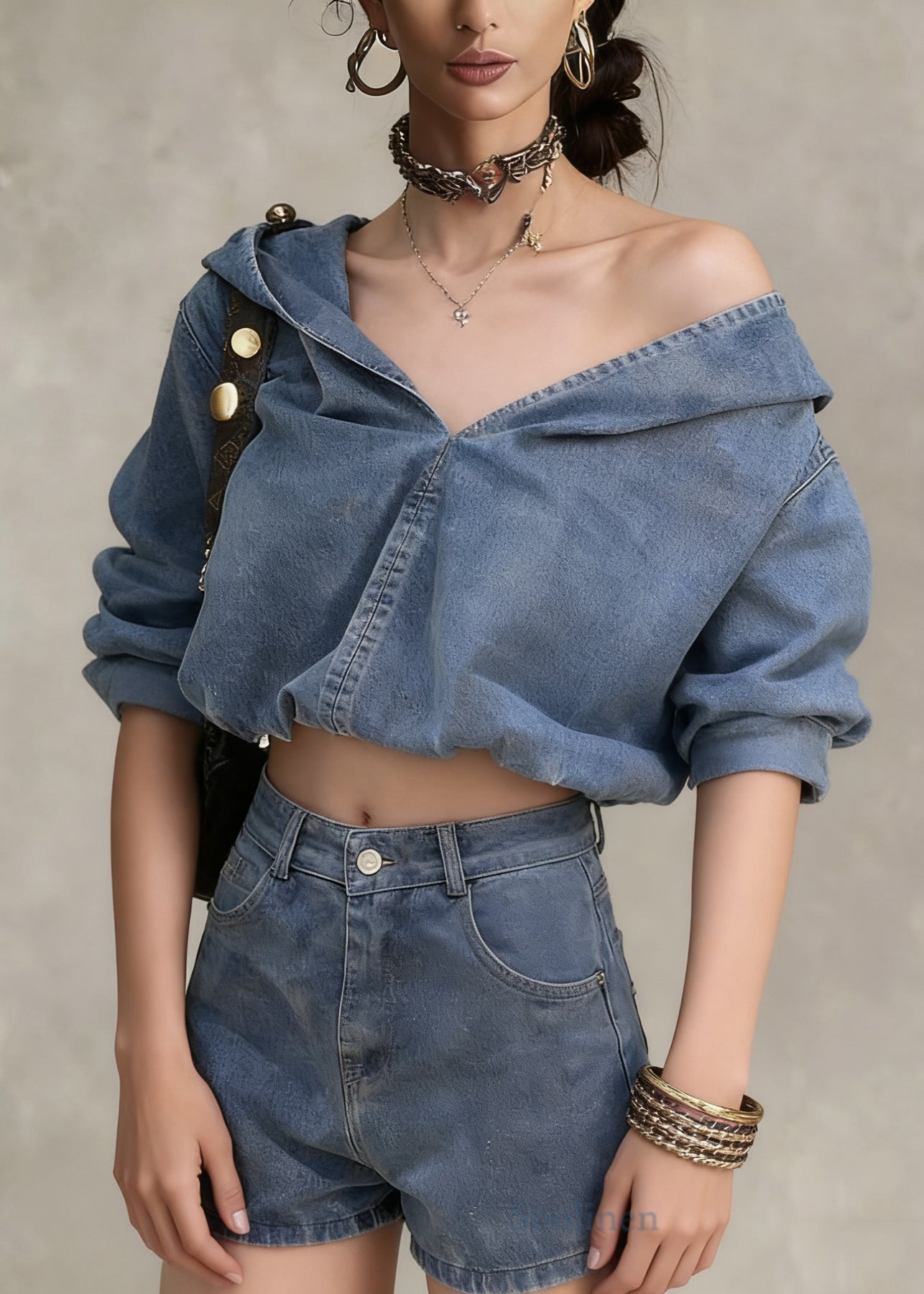 Casual Denim Blue Hooded Coat And Shorts Two Pieces Set Spring