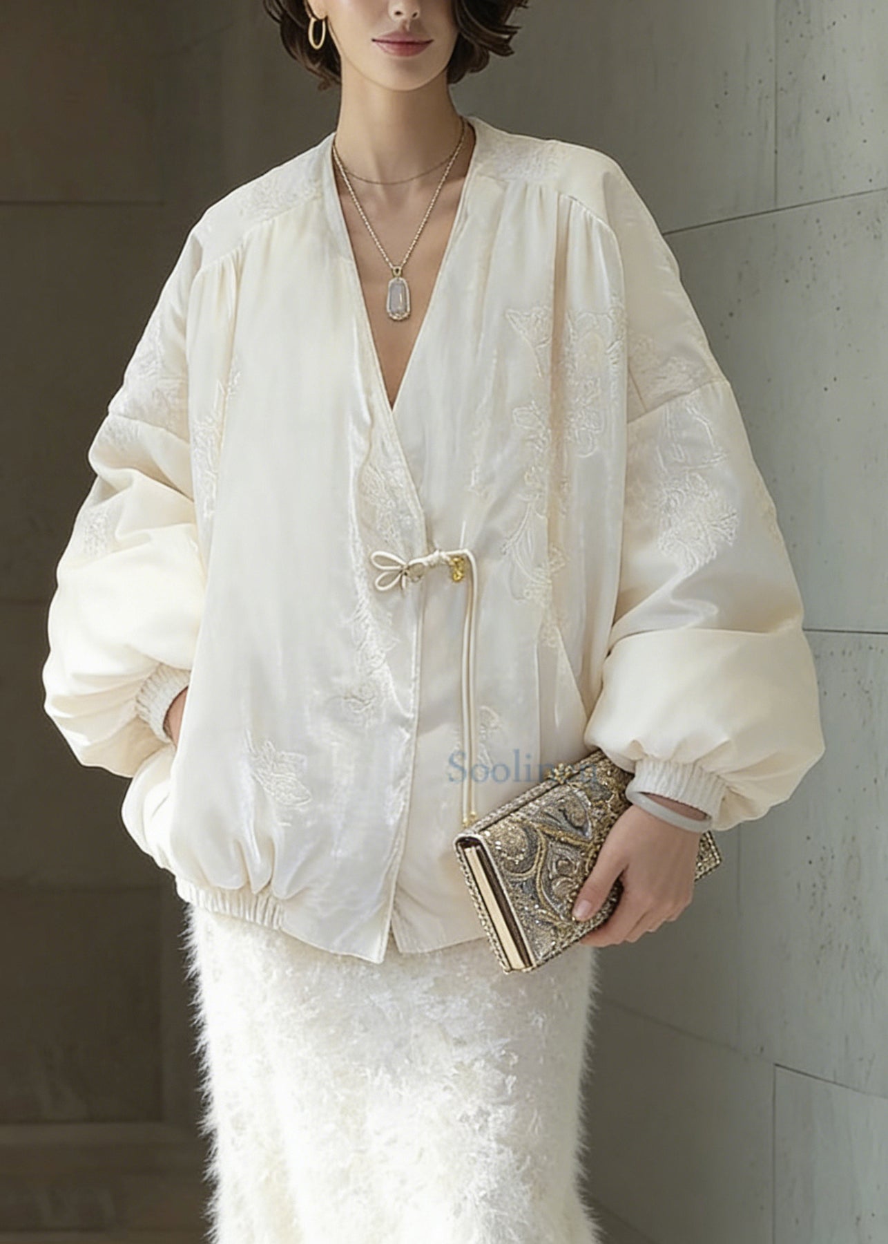Chinese Style White Embroidered Duck Down Coats Winter