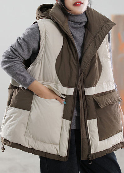 Boho Beige Pockets Patchwork Casual Winter Duck Down Jackets