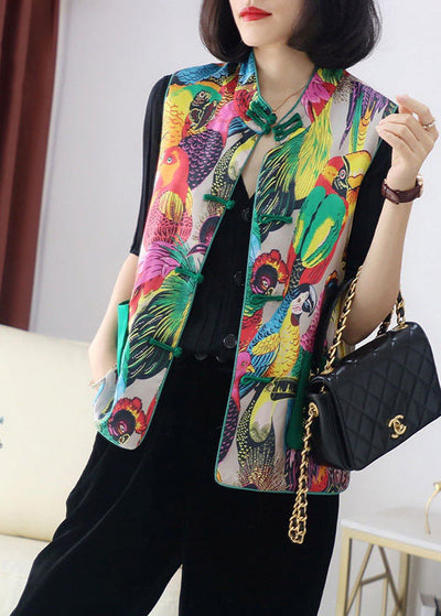 Women retro Print Pockets Button Fall Sleeveless Vest