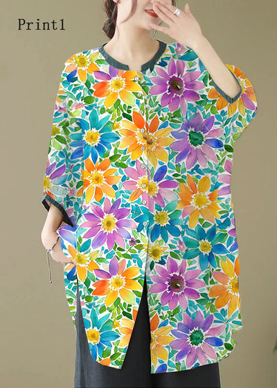 Print1 Loose Linen Long Dresses Button Solid Half Sleeve