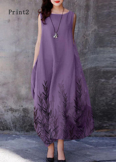 Bohemian Print2 O-Neck Exra Large Hem Cotton Dresses Sleeveless