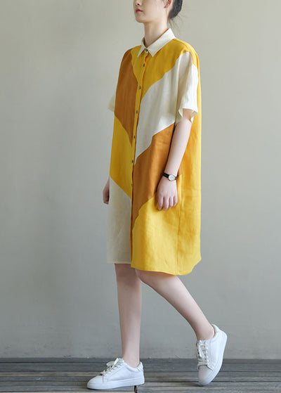 Stylish Colorblock Button Peter Pan Collar Patchwork Multi Cotton A Line Dress Short Sleeve