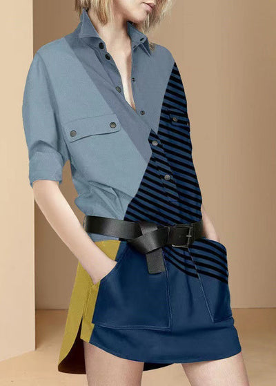 Chic Khaki Peter Pan Collar Asymmetrical Patchwork Cotton Dresses Spring
