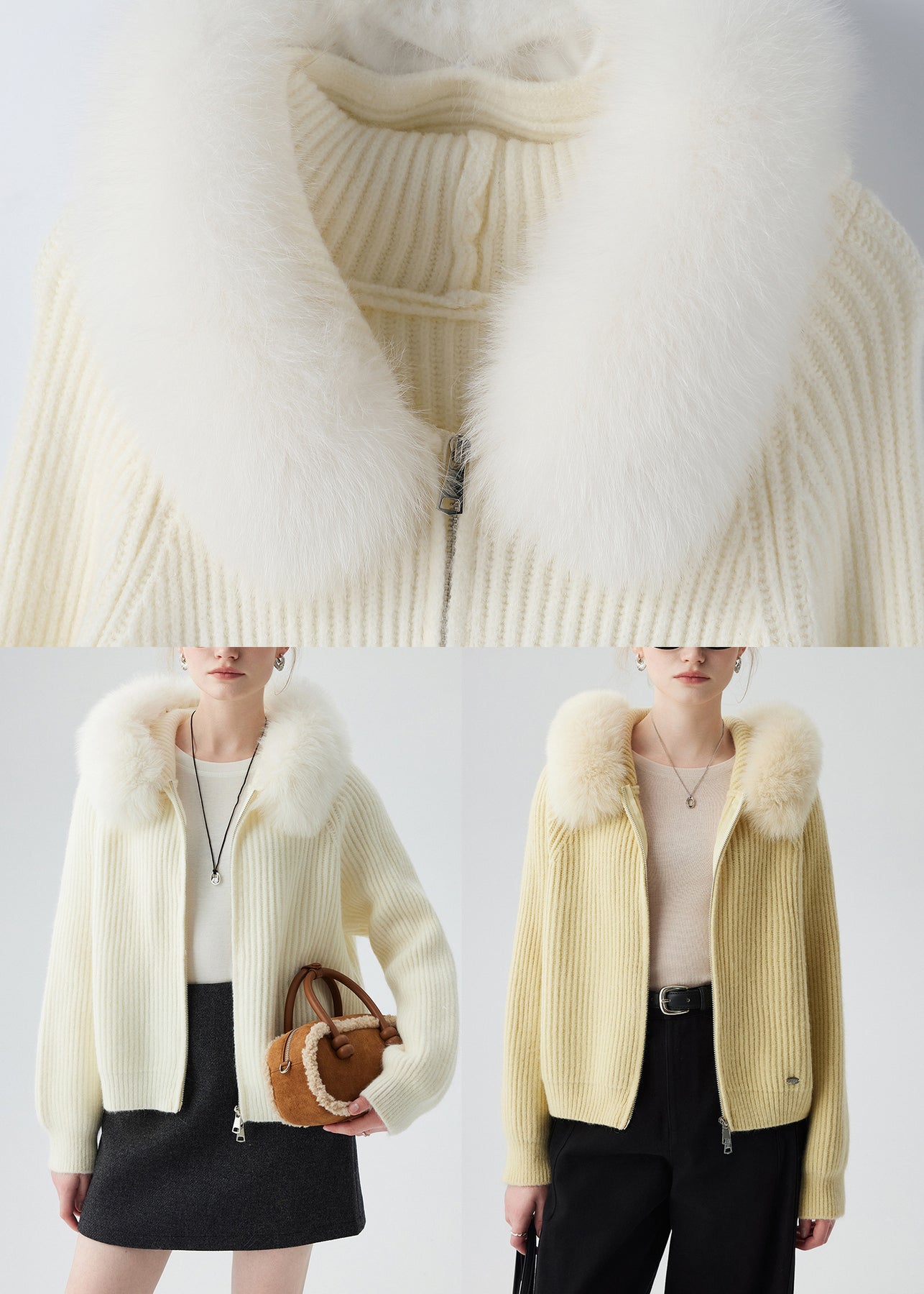 DIY White Hooded Patchwork Fox Fur Knit Cardigans Winter
