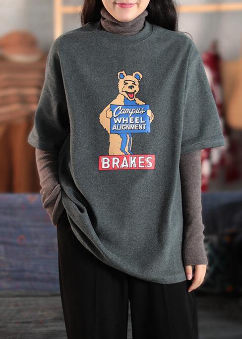 Diy Dark Gray Animal Design Shirts O Neck Oversized Spring Blouse - SooLinen