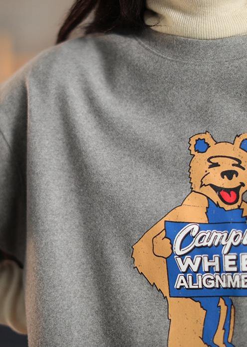 Diy Dark Gray Animal Design Shirts O Neck Oversized Spring Blouse