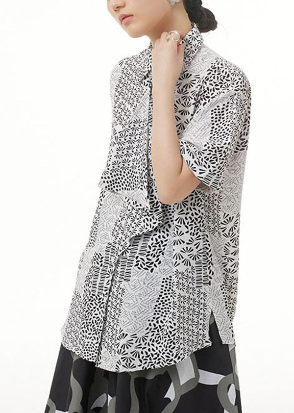 Modern Black Peter Pan Collar Print Patchwork Cotton Shirt Top Summer