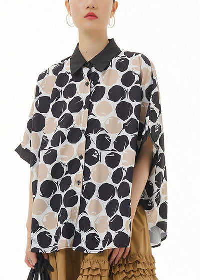 Chic Black Peter Pan Collar Dot Cotton Shirt Summer