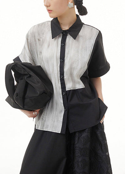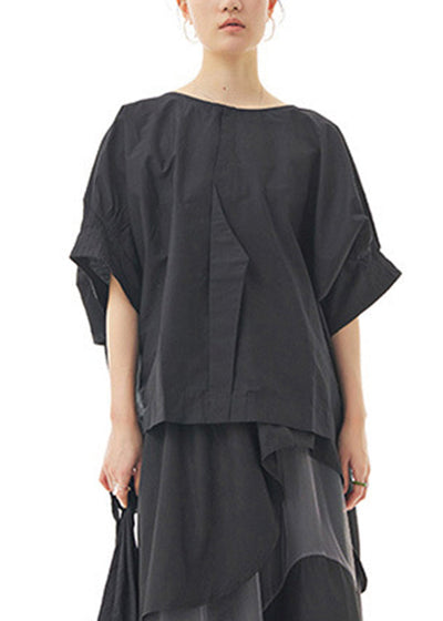 Black Tie Dye Cotton Blouse Tops Oversized Summer