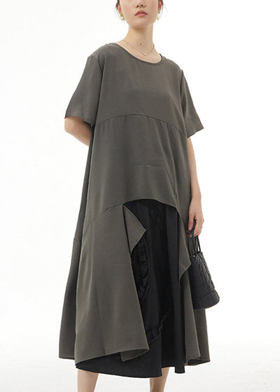 Boho Grey Asymmetrical Design Cotton Long Tops Summer