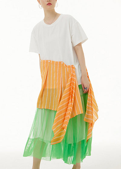Modern White Asymmetrical Patchwork Tulle Cotton Long Tops Summer