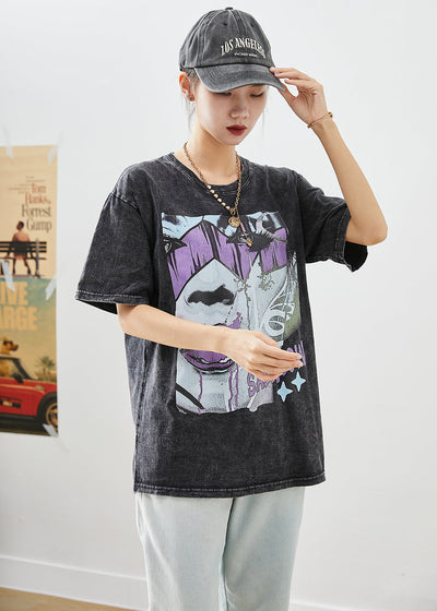 DIY Black Oversized Print Cotton Sweatshirts Tops Summer