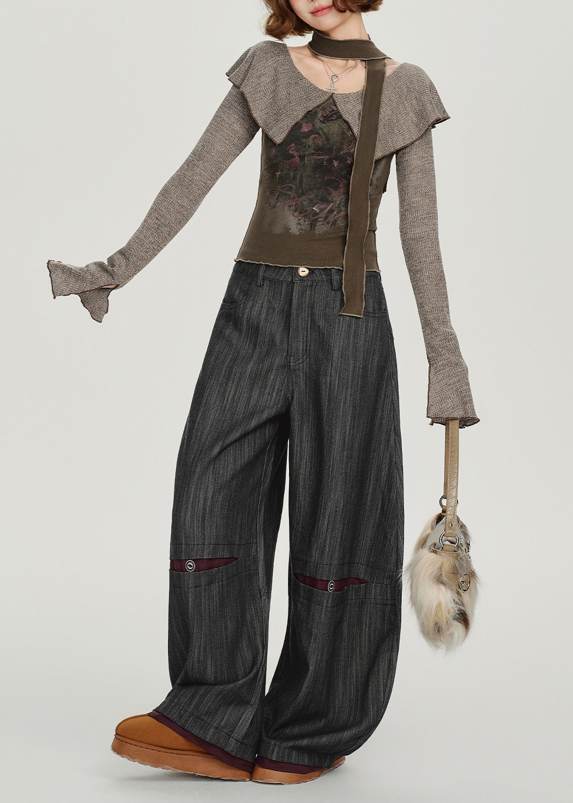 Art Brown Peter Pan Collar Patchwork Cotton Shirt Spring