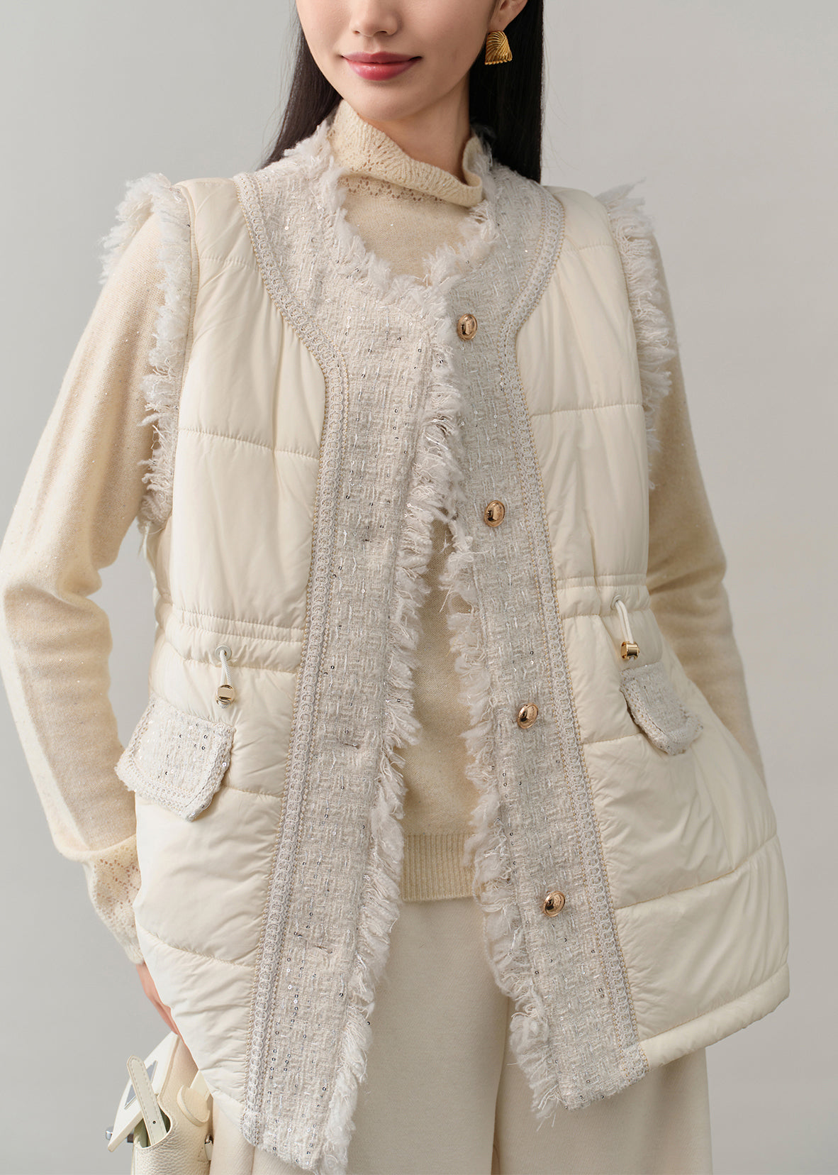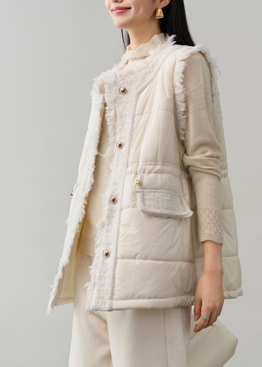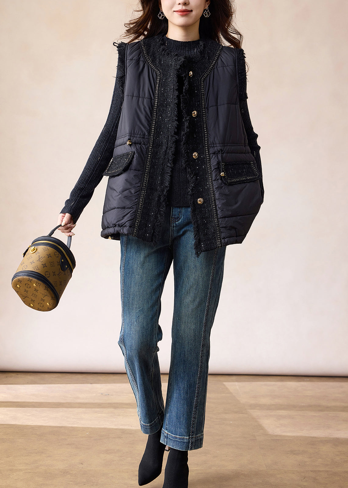 Elegant Black Patchwork Fine Cotton Filled Vests Winter