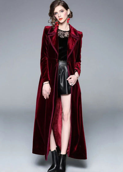 Jacquard Red Pockets Button Silk Velour Men Coats Spring