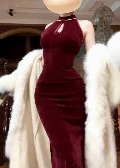 Italian Multi O Neck Patchwork Wrinkled Velour Long Dress Spring