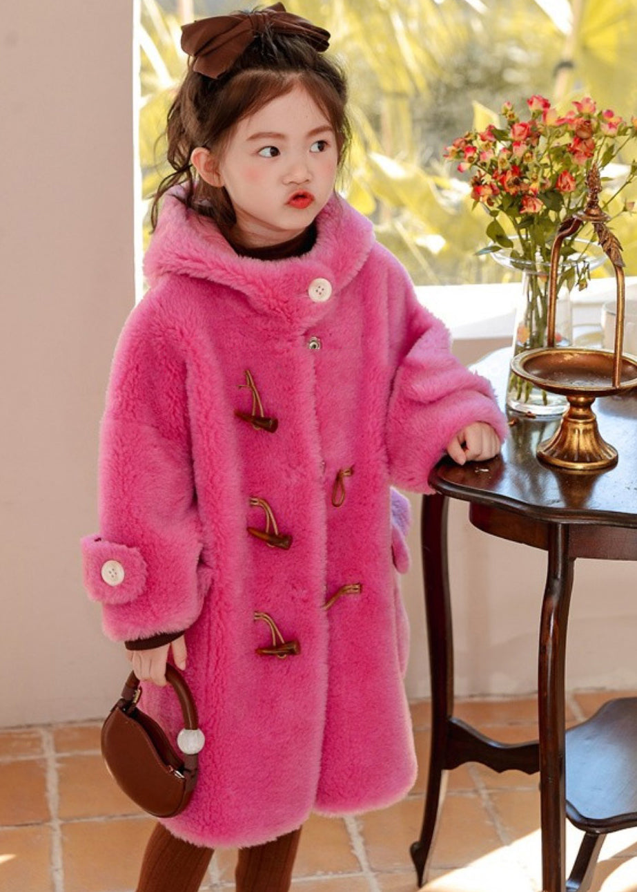 Boutique Rose Patchwork Kids Hoodies Mink Velvet Long Coats Winter