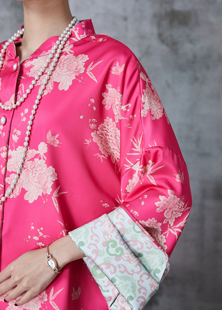 Art Rose Oversized Print Silk Wear On Both Sides Jackets Spring