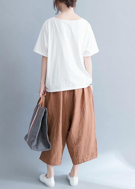 Women white cotton tunic top o neck prints Knee summer tops - SooLinen