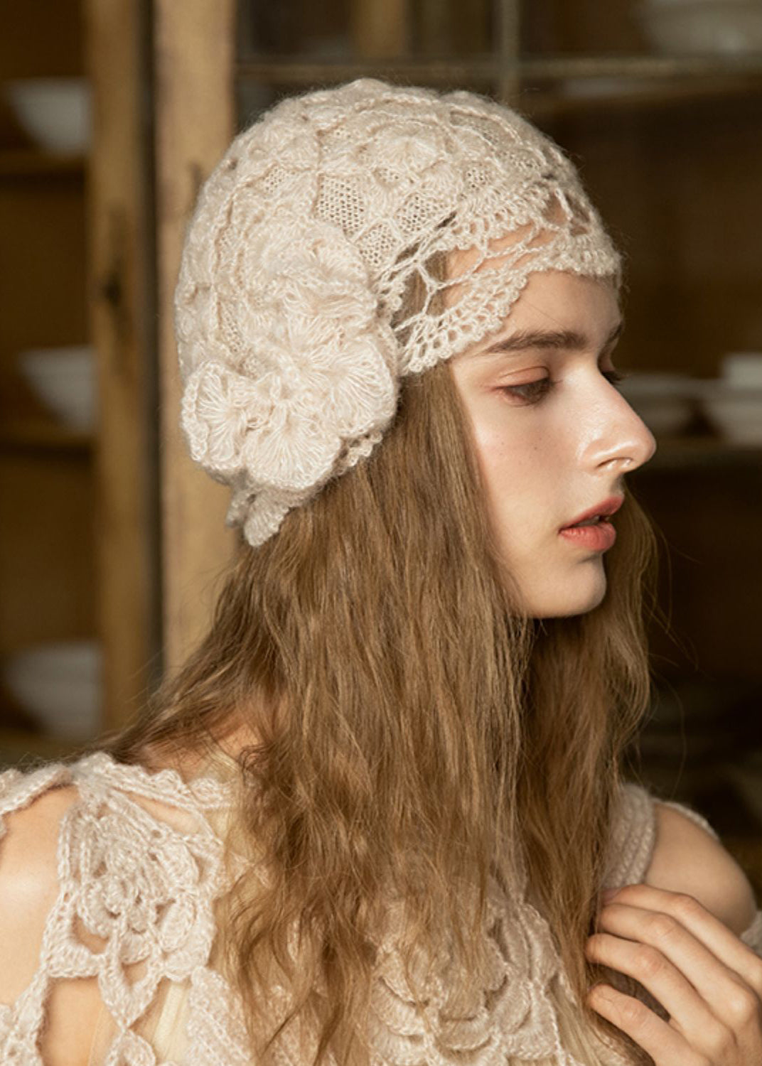 Elegant Apricot Handmade Butterfly Hollow Out Floral Boonie Hat