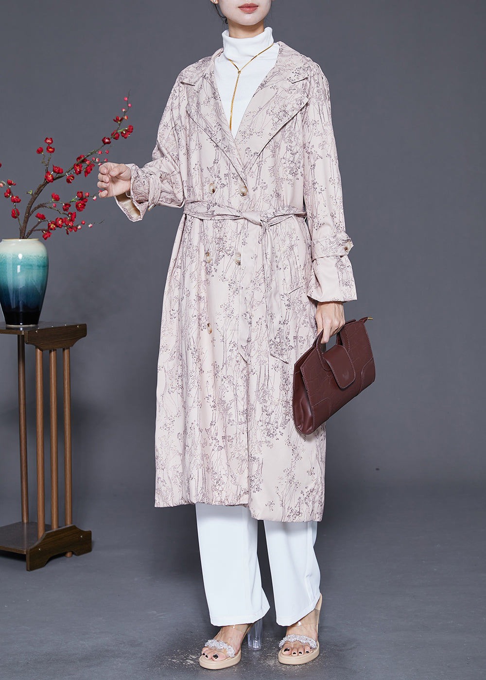 Fine Beige Print Double Breast Cotton Trench Coat Fall